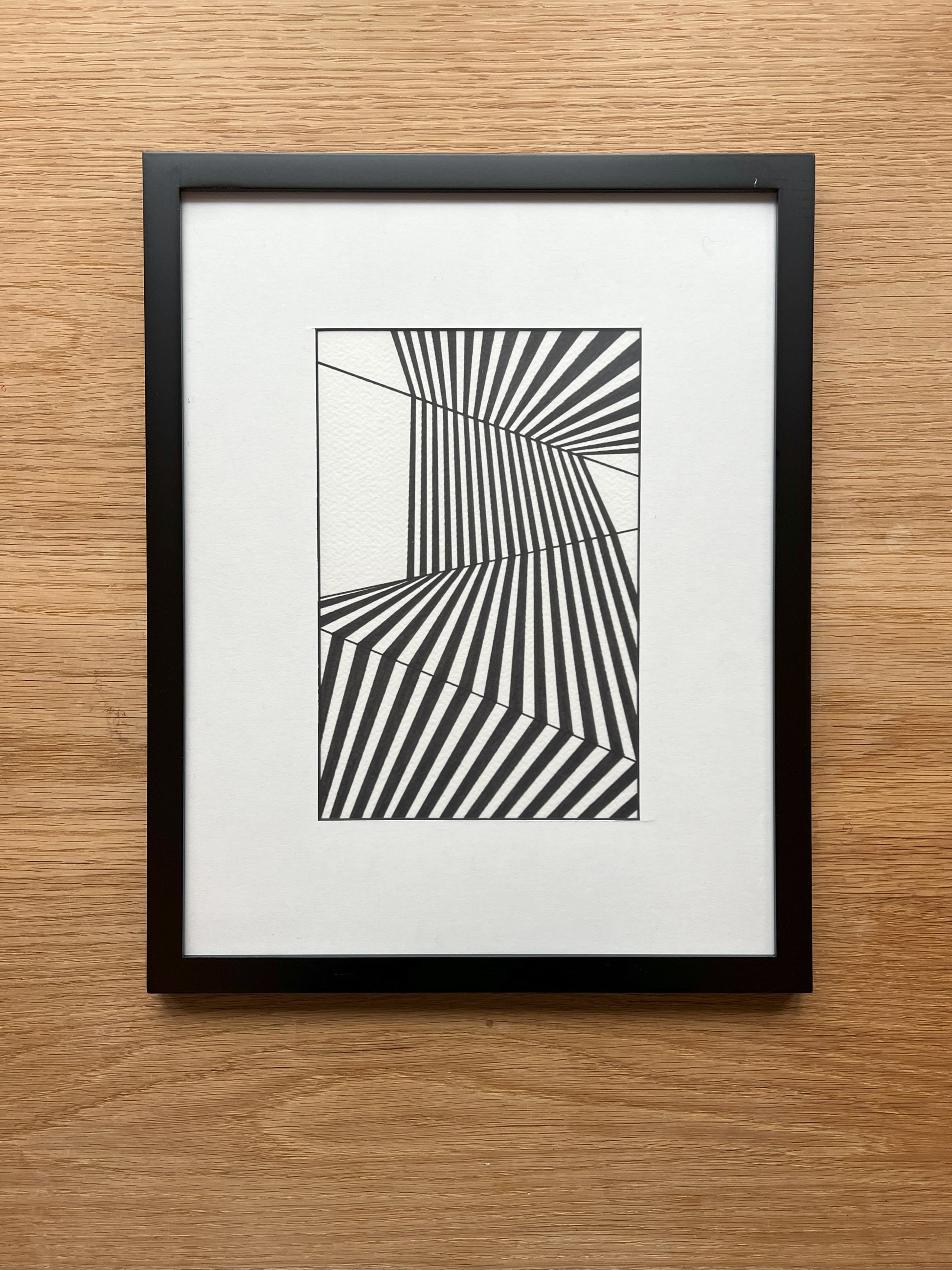 The size of this work 9”x6” (the same size as the book), on 140lb, cold pressed watercolor paper created with archival ink. This piece is framed in 11x14” Black Wood with custom matte.